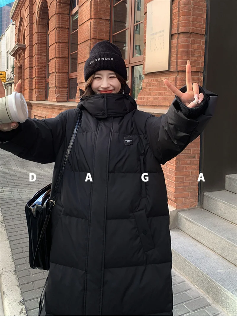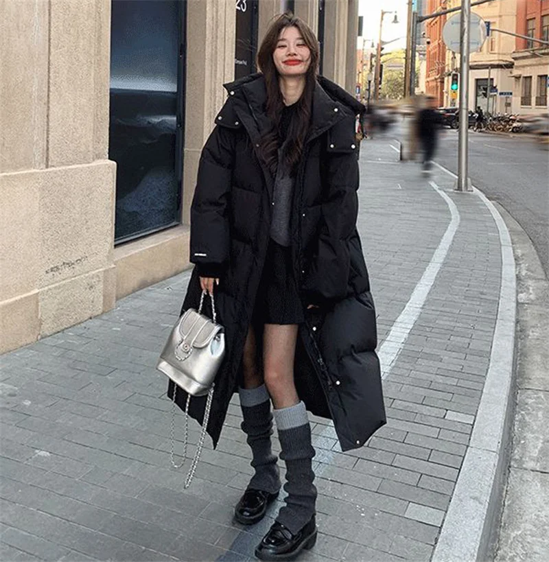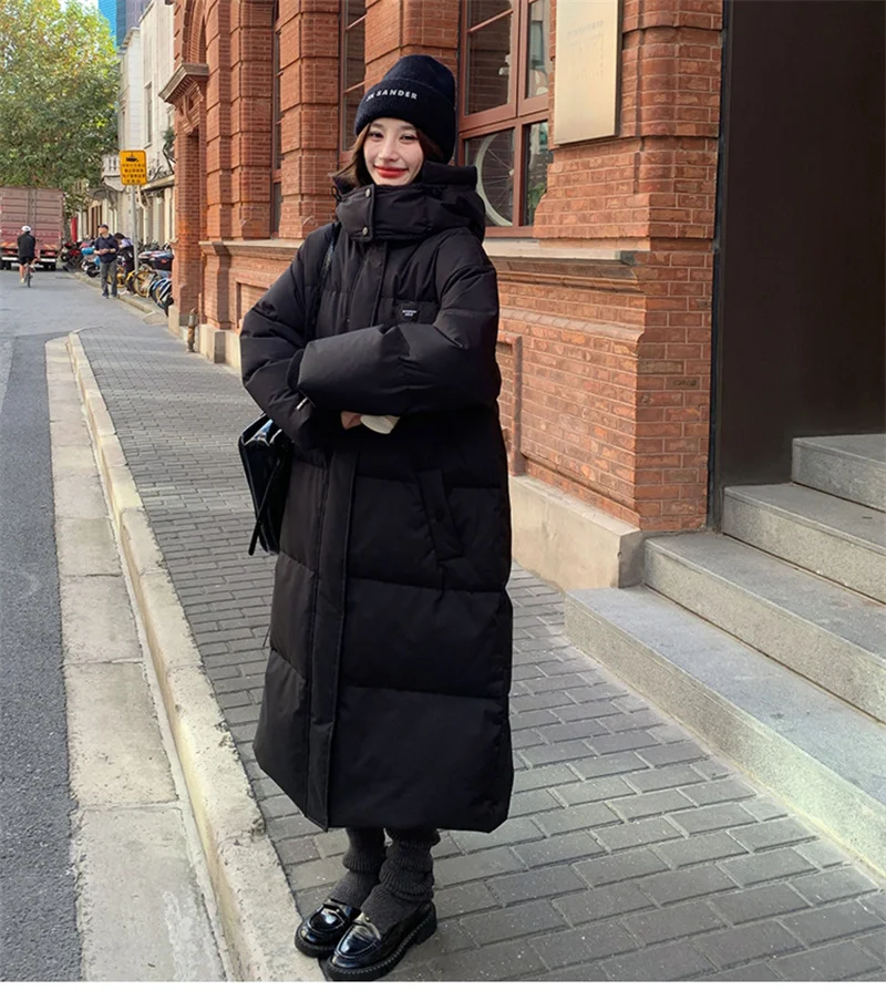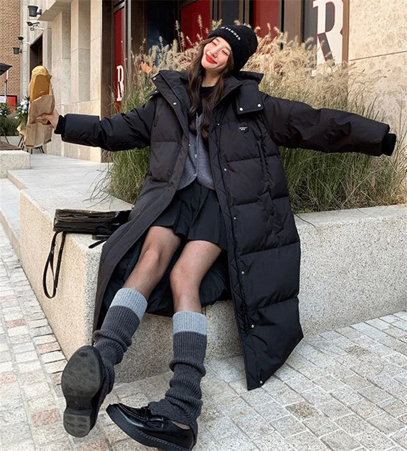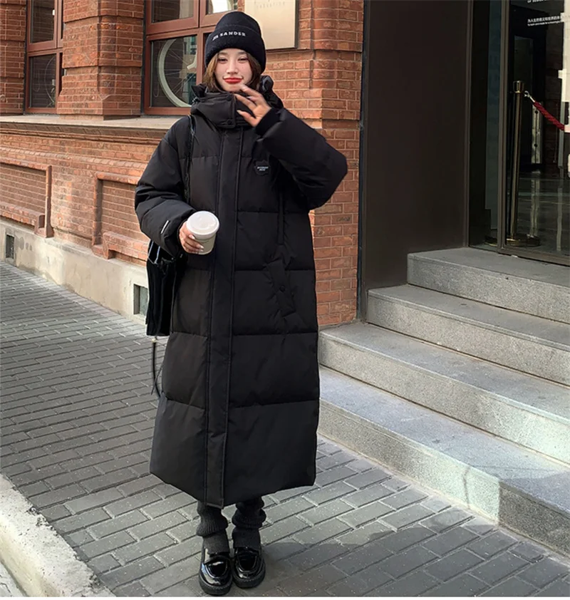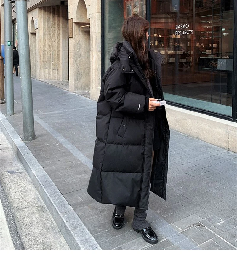 - Windproof Hooded Long Coat: Women’s Oversized Down Cotton Jacket