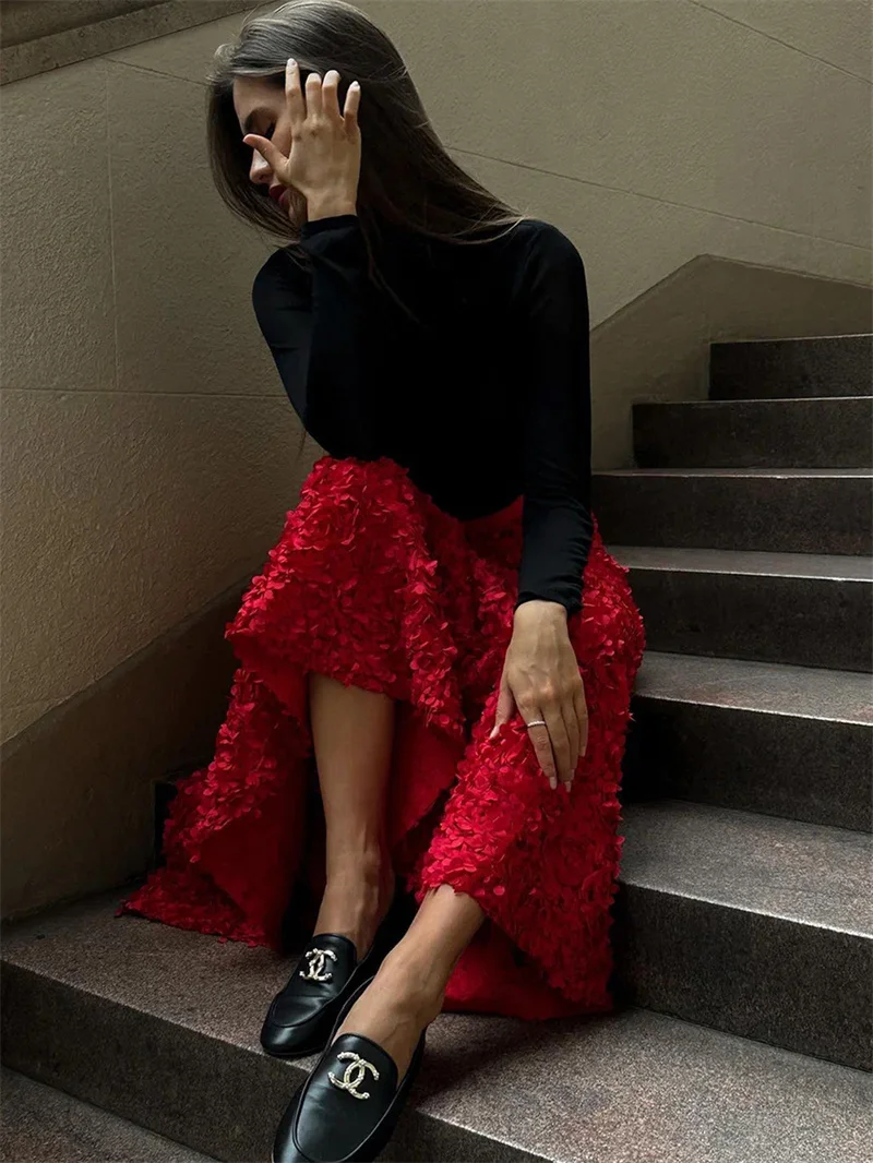 - Chic Long Petal Skirt Design: Elegant Lady Unique High Waisted Skirt