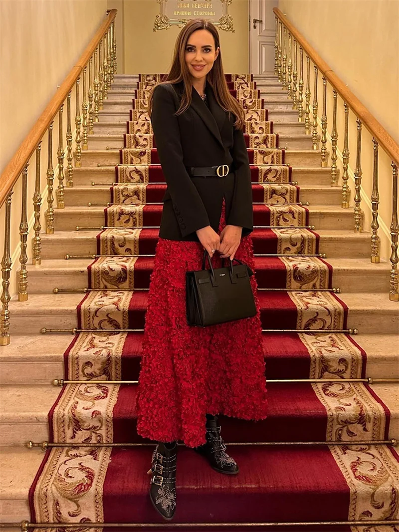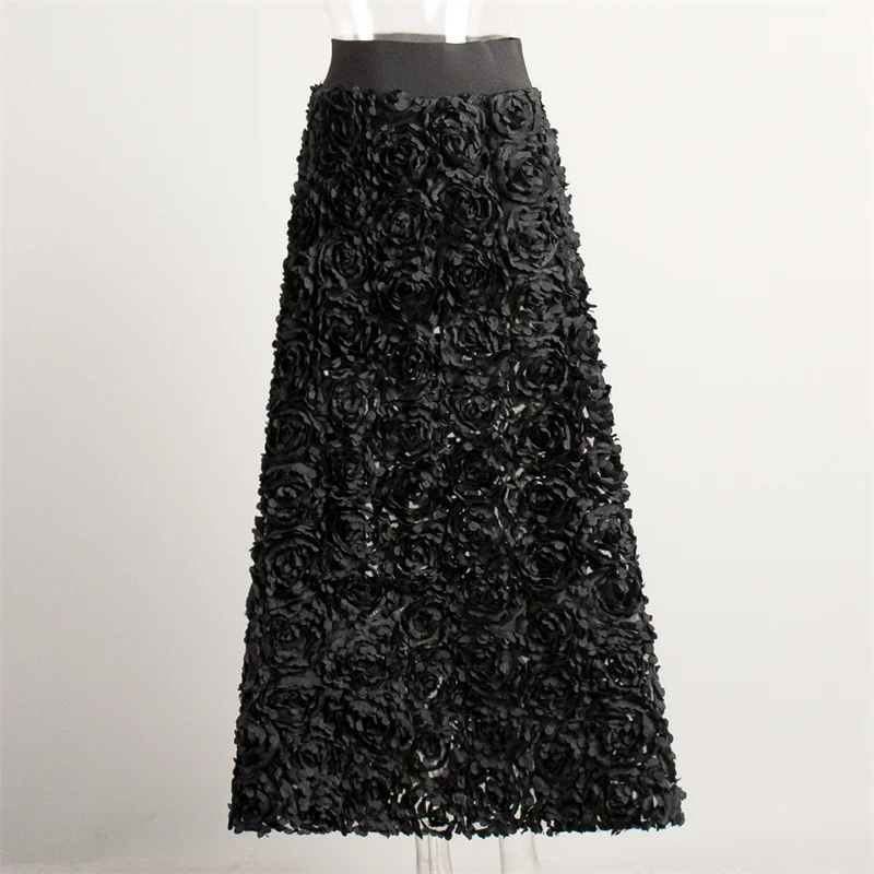 ZAROY Luxury Party Evening Gown Long Skirts 3D Petal A-line Mid-calf Skirt Designer Unique Big Swing Elegant Skirt Faldas юбк