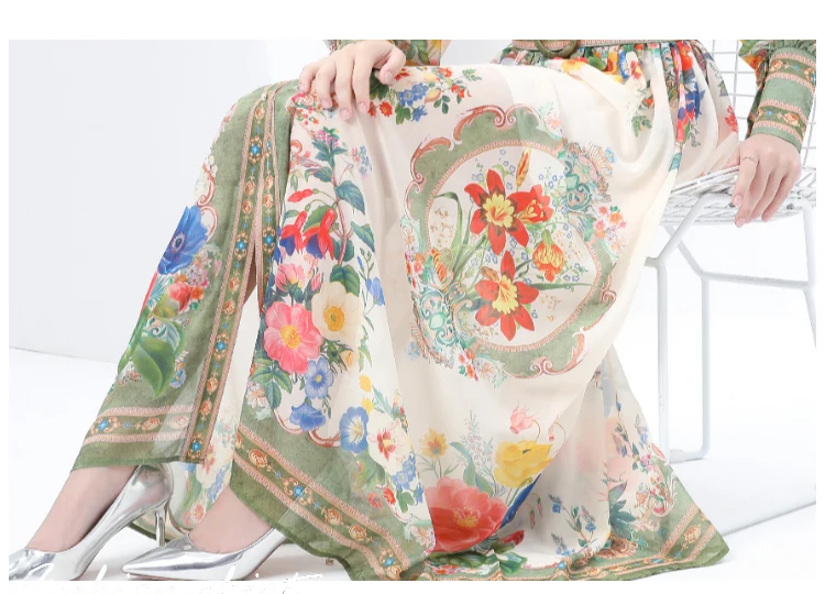 Be the first to review “ZAROY Luxury Runway Maxi Dress Women Stand Collar Long Sleeve Single Breasted Floral Print Belt Long Boho Party Robe Vestidos”