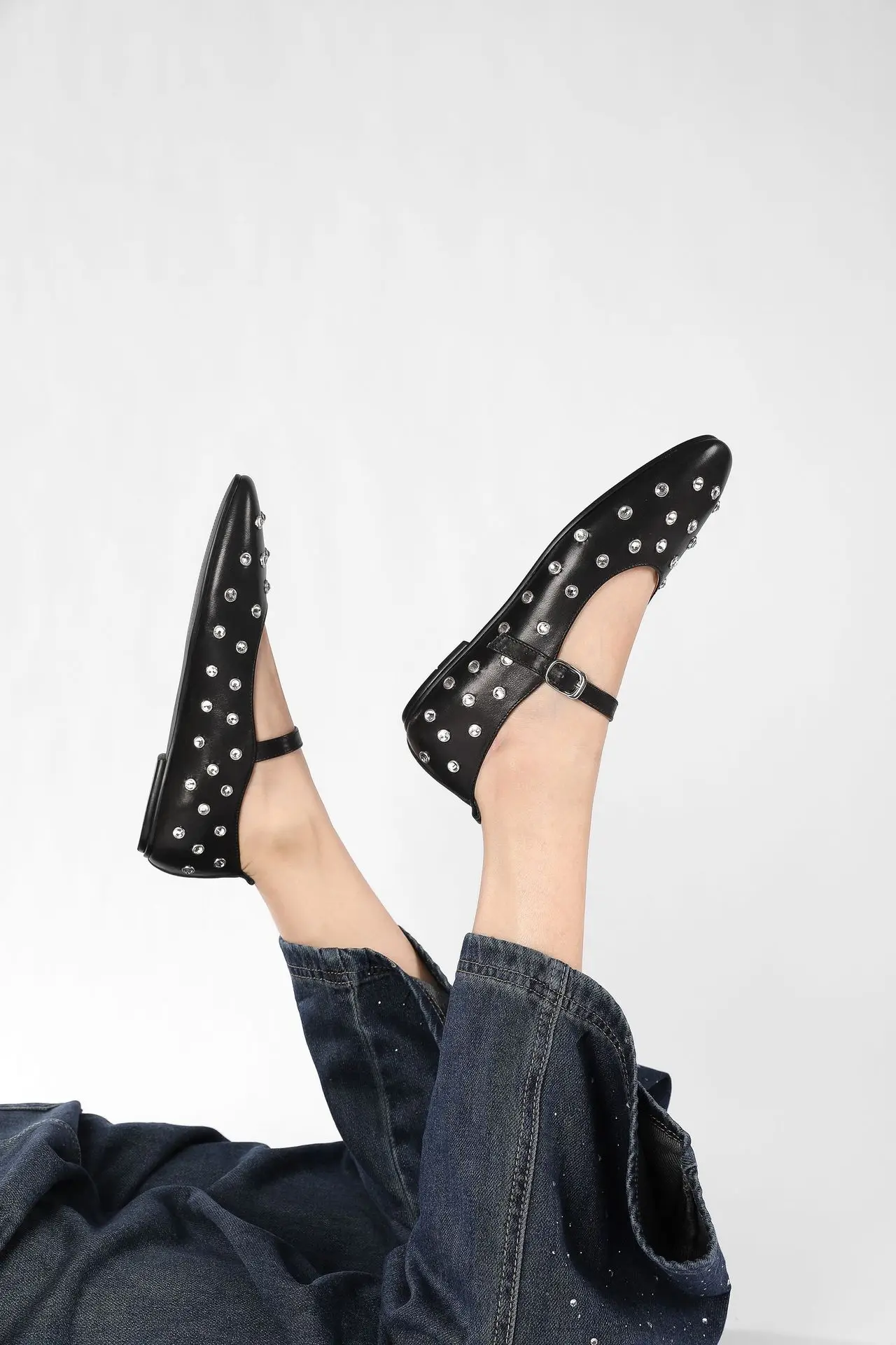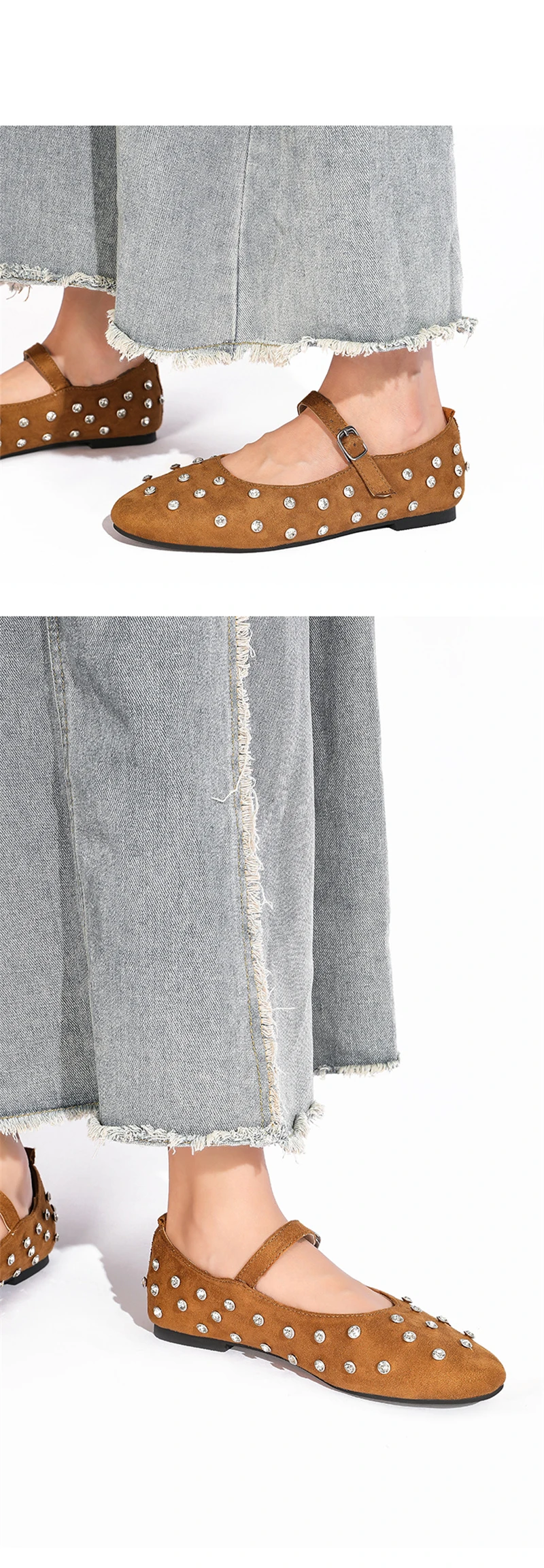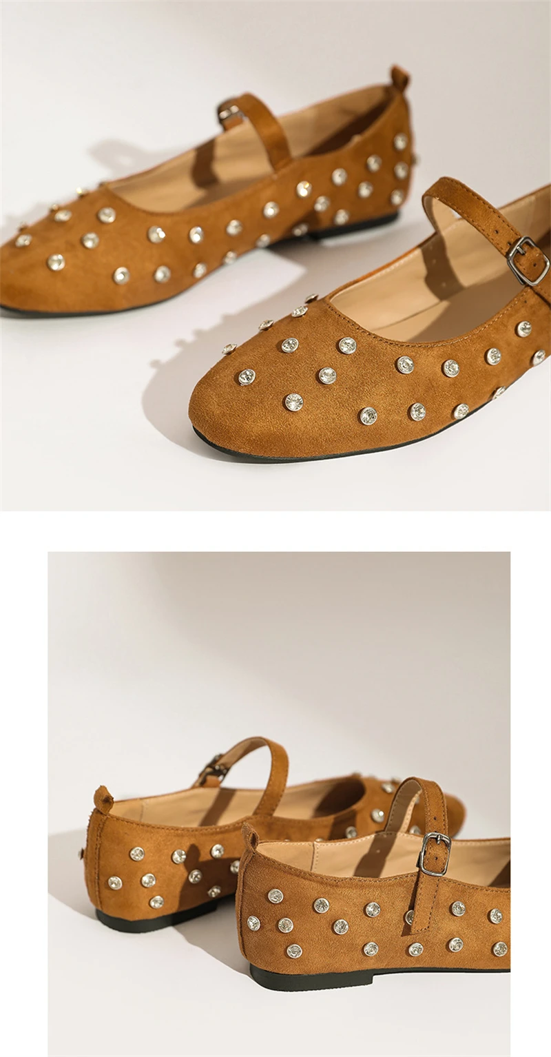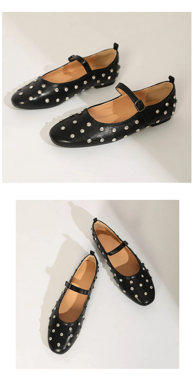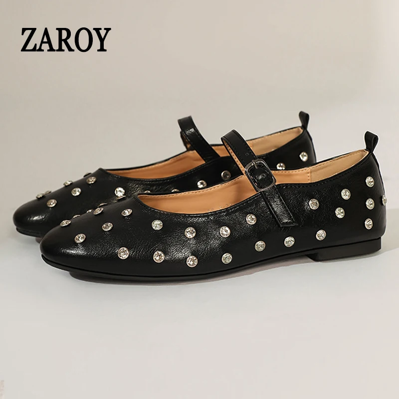 ZAROY Rivet Mary Jane Shoes Women Fashion Brand Outdoor Ballet Flats Summer Round Toe Low Heel Rhinestones Zapatos Para Mujer