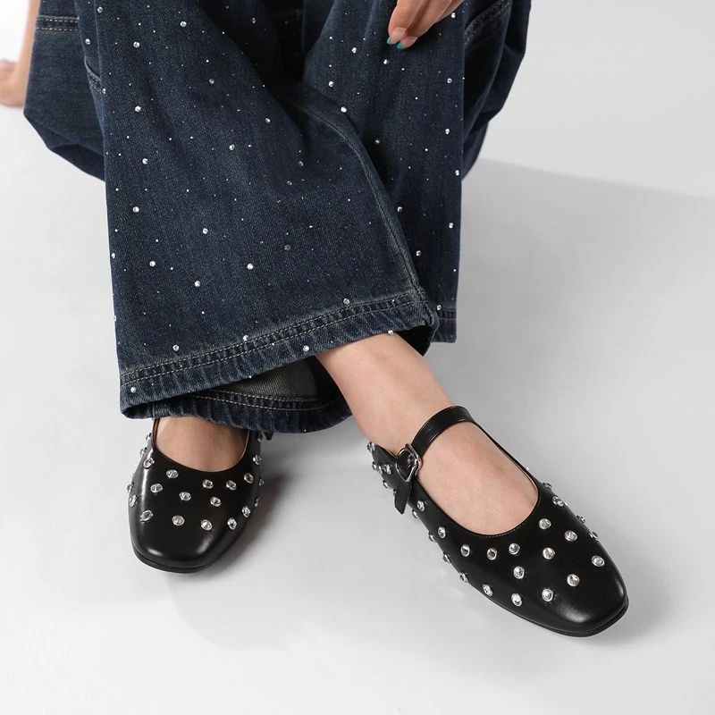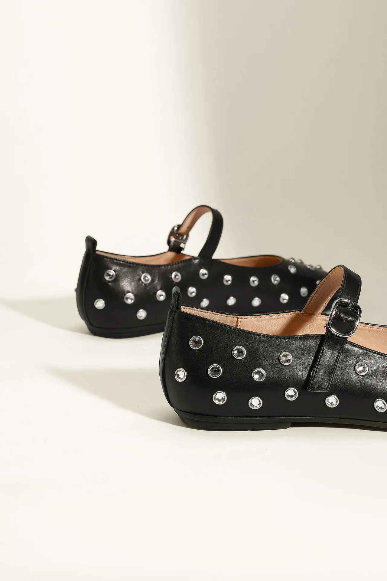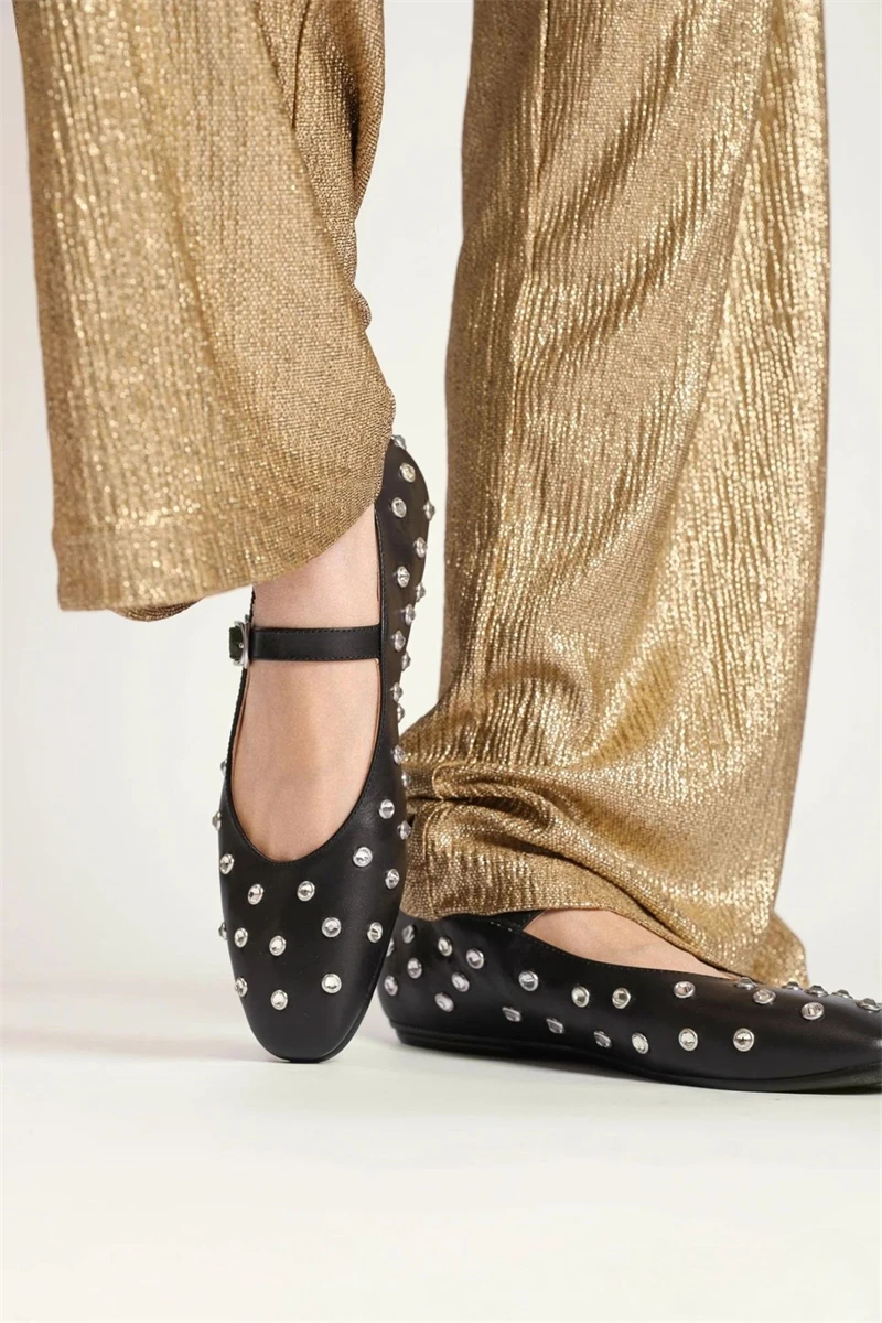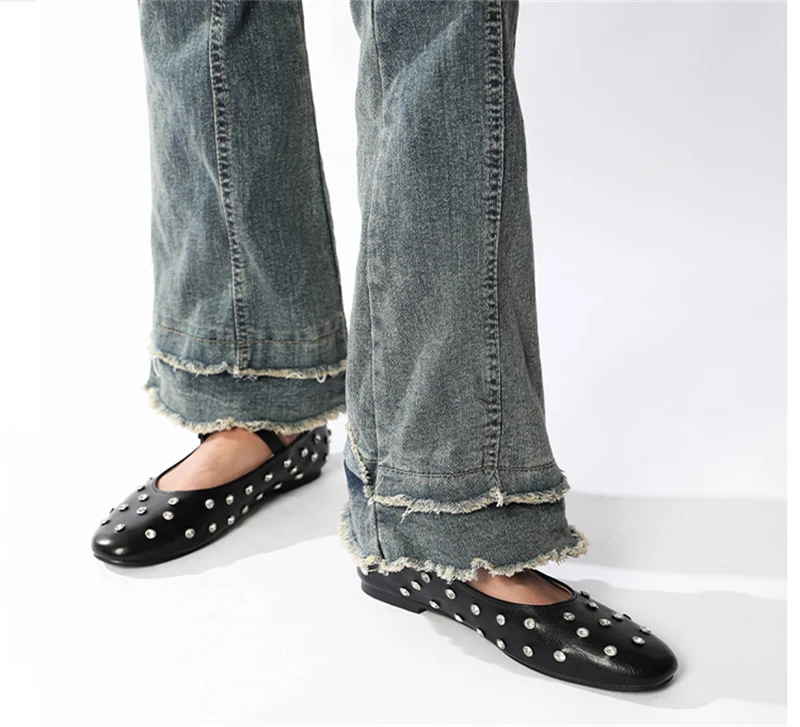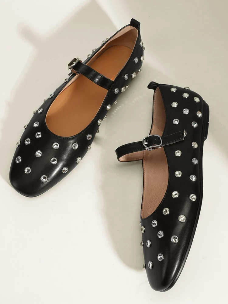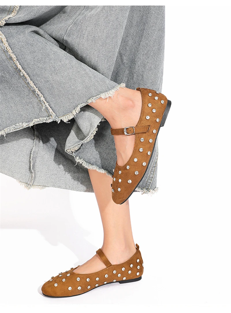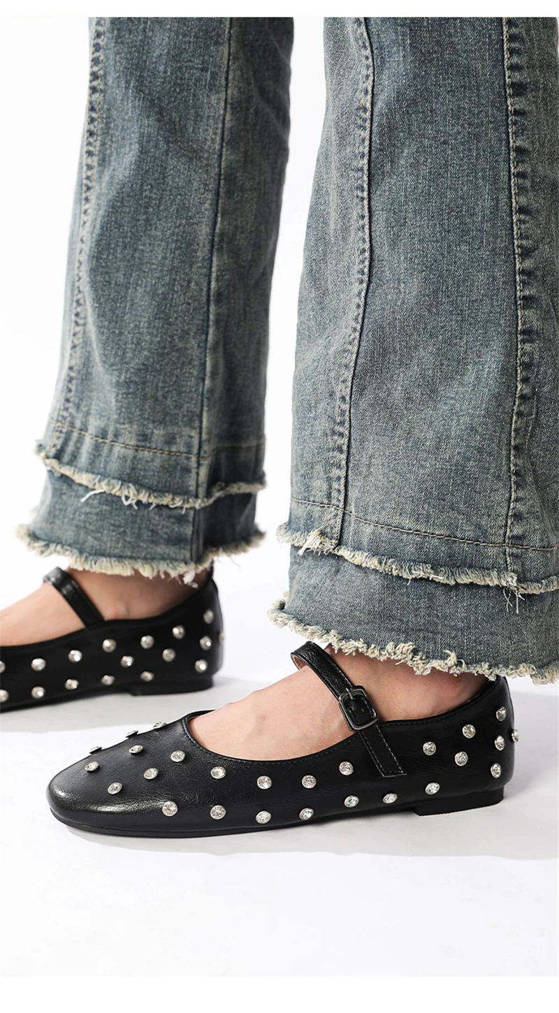 ZAROY Rivet Mary Jane Shoes Women Fashion Brand Outdoor Ballet Flats Summer Round Toe Low Heel Rhinestones Zapatos Para Mujer