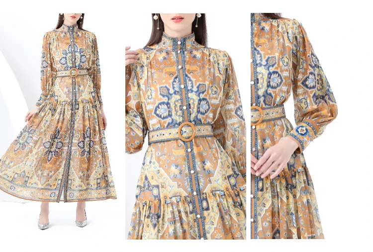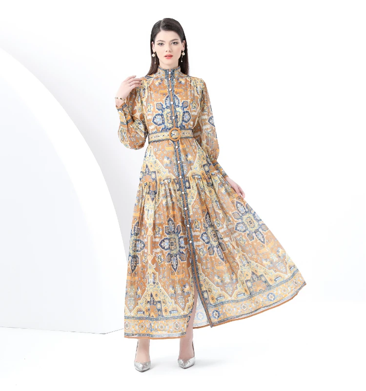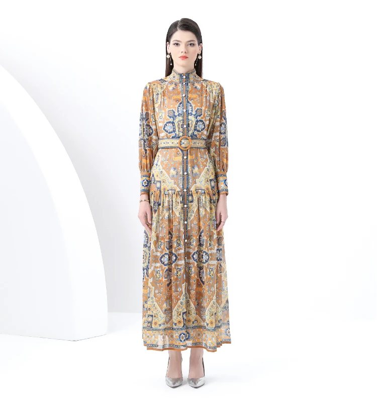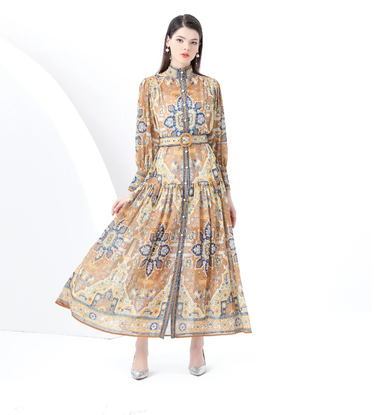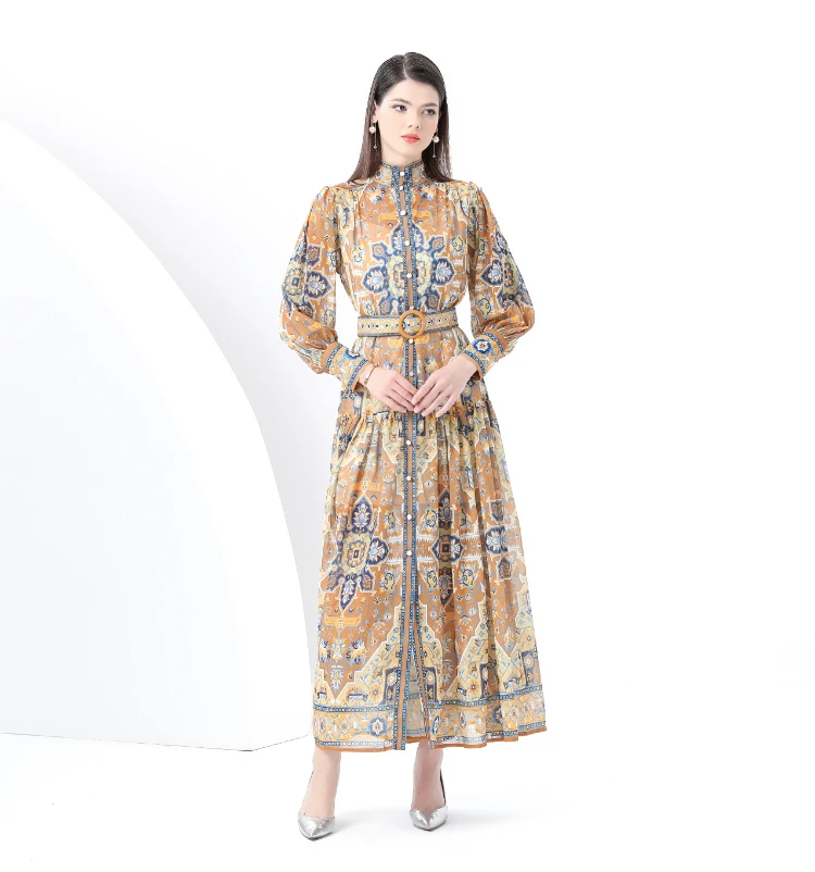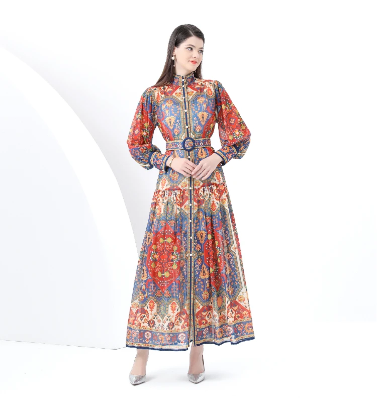 Be the first to review “ZAROY Vintage Boho Print Lantern Sleeve Maxi Dress Buton-up A-line Print Belted Luxury Long Dress Elegant Party Vestidos שמלה”