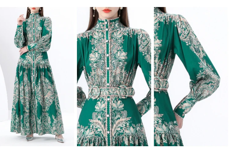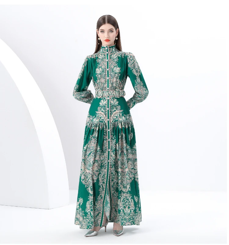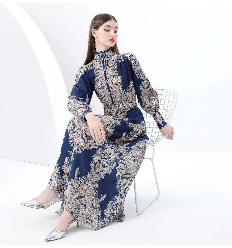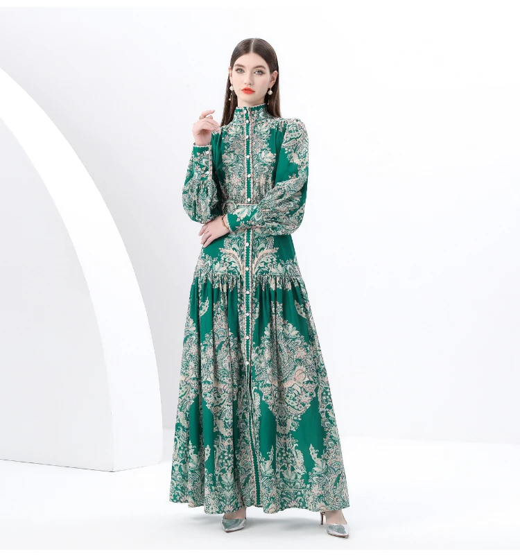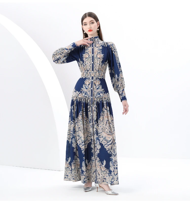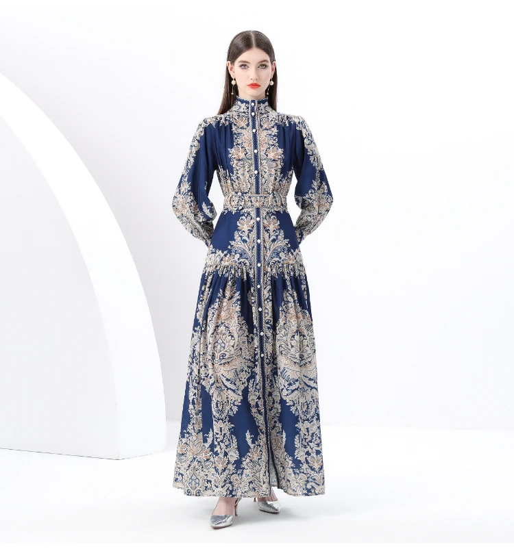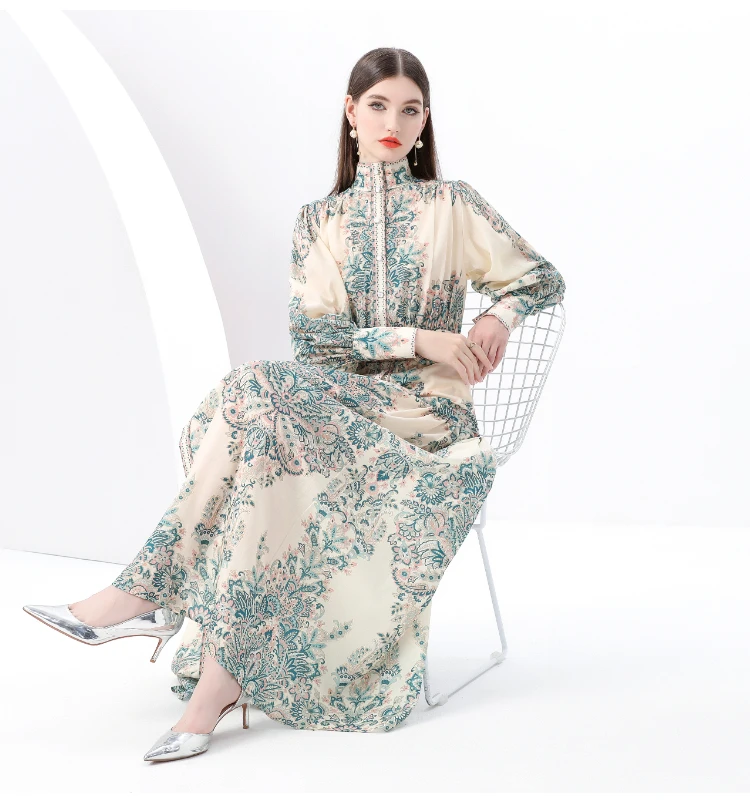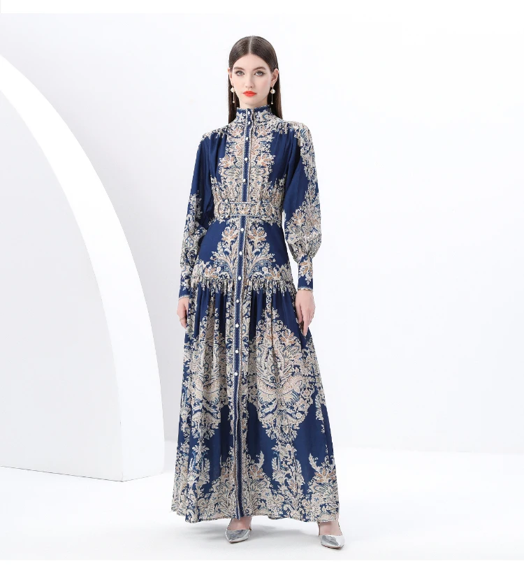 Be the first to review “ZAROY Vintage Luxury Print Women Maxi Dress Long Sleeve Stand Collar Single-breasted Long Dress Party Robe Vestidos فساتين سهرة”
