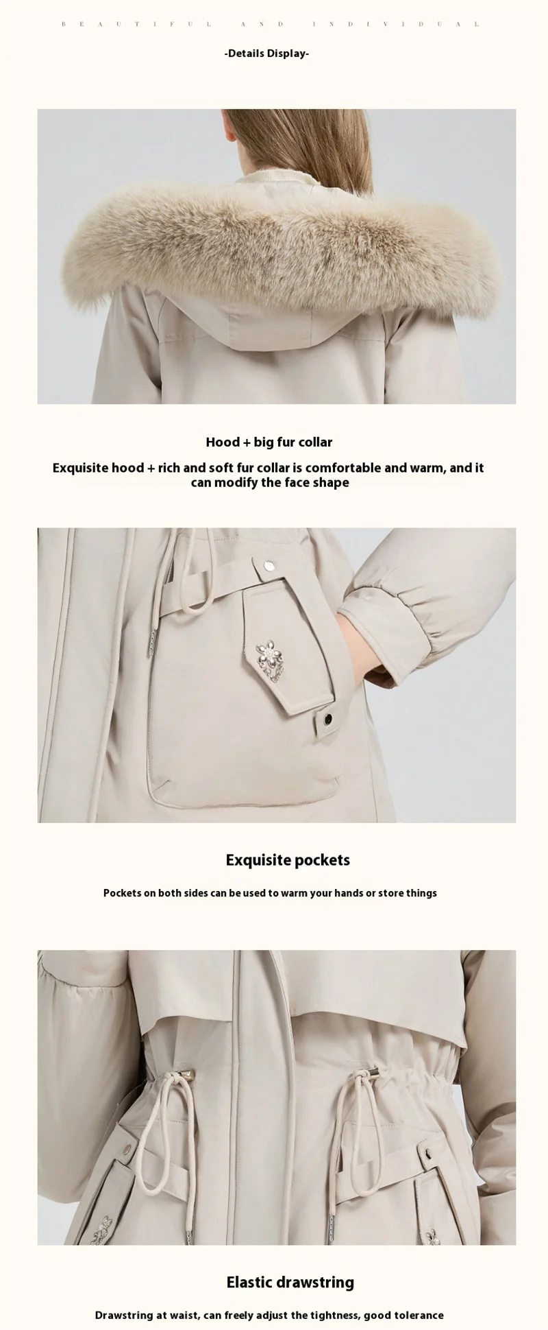 ZAROY Winter Fur Collar Hooded Parka Jacket Thick Warm Padded Coat Casual Loose Zipper Drawstring Overcoat куртка 겨울 아